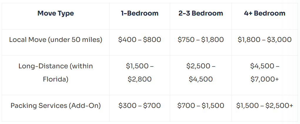 Florida Moving Cost Estimates: Local vs Long-Distance